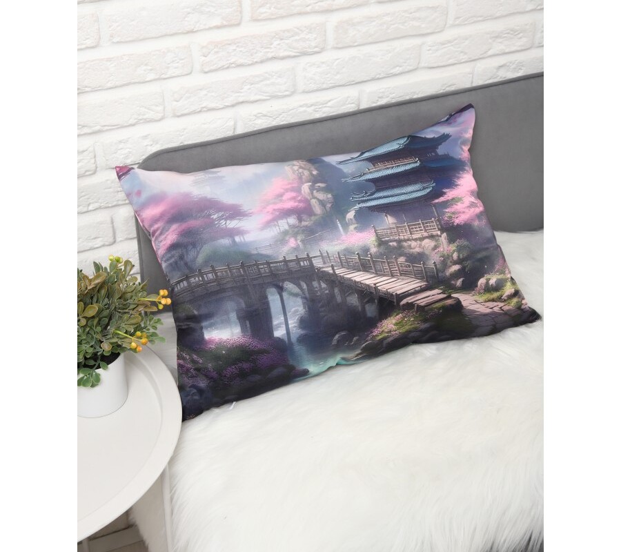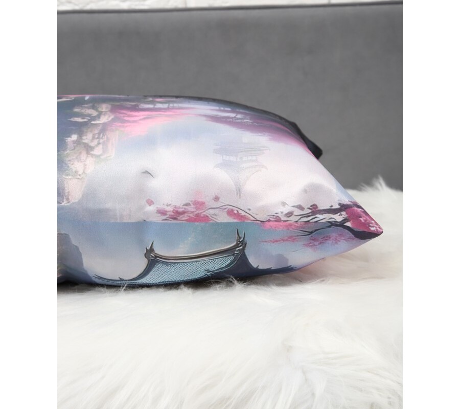 Красивая декоративная наволочка 40х60 см с пейзажем в мотивах Японии из атласа Ивановского производства выполнена из высококачественного полиэстера, что делает ее долговечной и простой в уходе. Атлас - блестящая, яркая, приятная на ощупь ткань, благодаря чему изделие из атласа очень красочные, привлекают внимание и поднимают настроение.