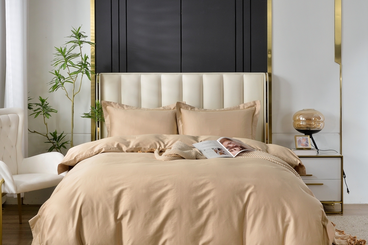 Для нашего фирменного однотонного постельного белья Celene мы используем макосатин из пряжи 60s плотности 300ТС. Это невероятно гладкая и шелковистая ткань с приятным матовым блеском, тонкая и в то же время прочная. Настоящий «хлопковый шелк», легкий, нежный, притягательный.