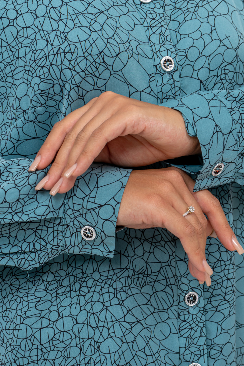 Цветная рубашка, представленная в двух вдохновляющих расцветках — белый и бирюза, добавит яркости и свежести в ваш образ. Обе расцветки являются универсальными и могут легко комбинироваться с различными аксессуарами, будь то скромный повседневный или броский праздничный вариант.